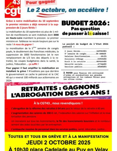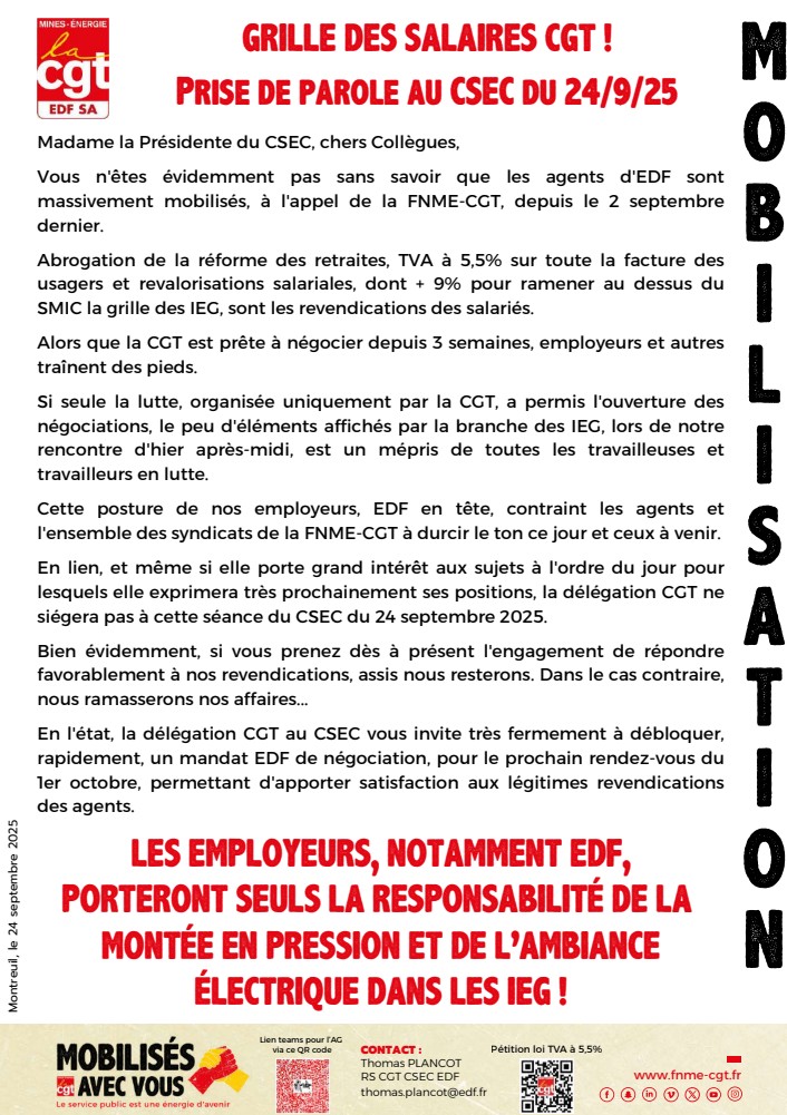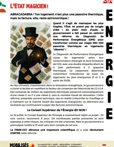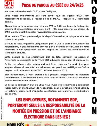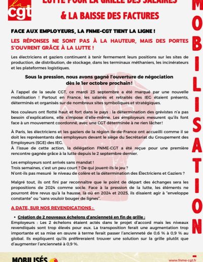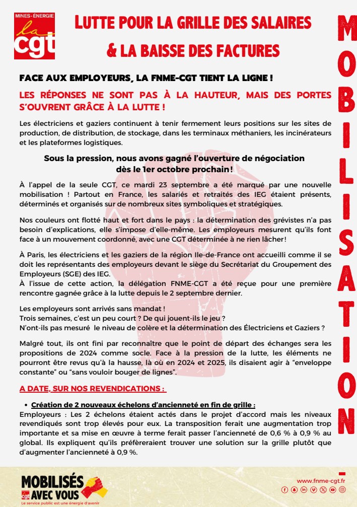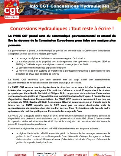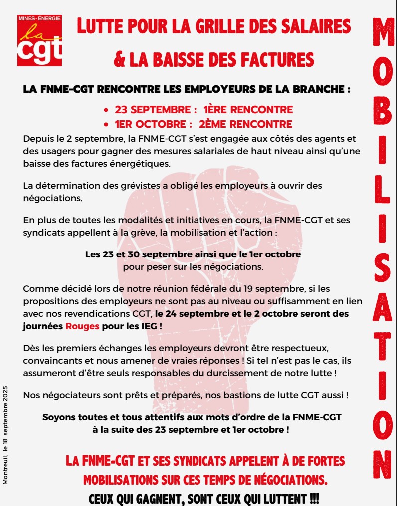 Chacun des onglets ci-aprés vous invite à découvrir des informations spécifiques pour Enedis, Hydro Centre, RTE, Commerce, GRDF, Retraités. Enfin le dernier onglets ci-dessous vous conduira aux dernières informations diffusées par le Syndicat CGT Energie 43.